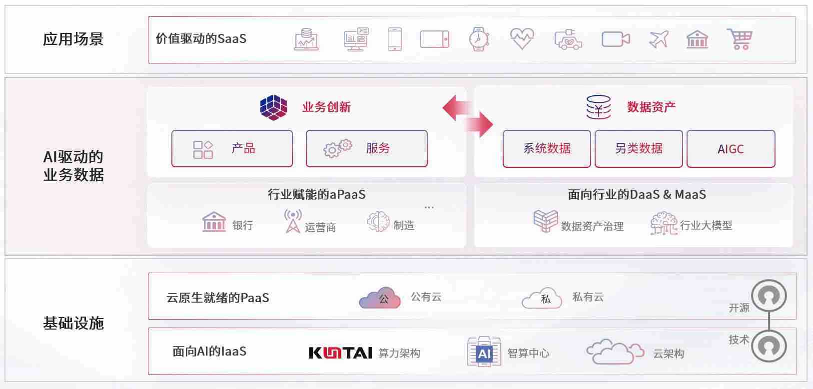 数字时代,,,围绕企业数字化转型的关键要素,,J9.COM数码开创性的提出数云融合战略和技术体系框架,,,着力在云原生、、、、数字原生、、AI原生和信创产业上架构产品和服务能力,,,为处在不同数字化转型阶段的快消零售、、、、汽车、、、、金融、、、医疗、、、政企、、教育、、运营商等行业客户提供泛在的敏捷IT能力和融合的数据驱动能力,,构建跨界融合创新的数字业务场景和新业务模式,,,,助力企业级客户建立面向未来的核心能力和竞争优势,,全面推动社会的数字化、、智能化转型升级。。